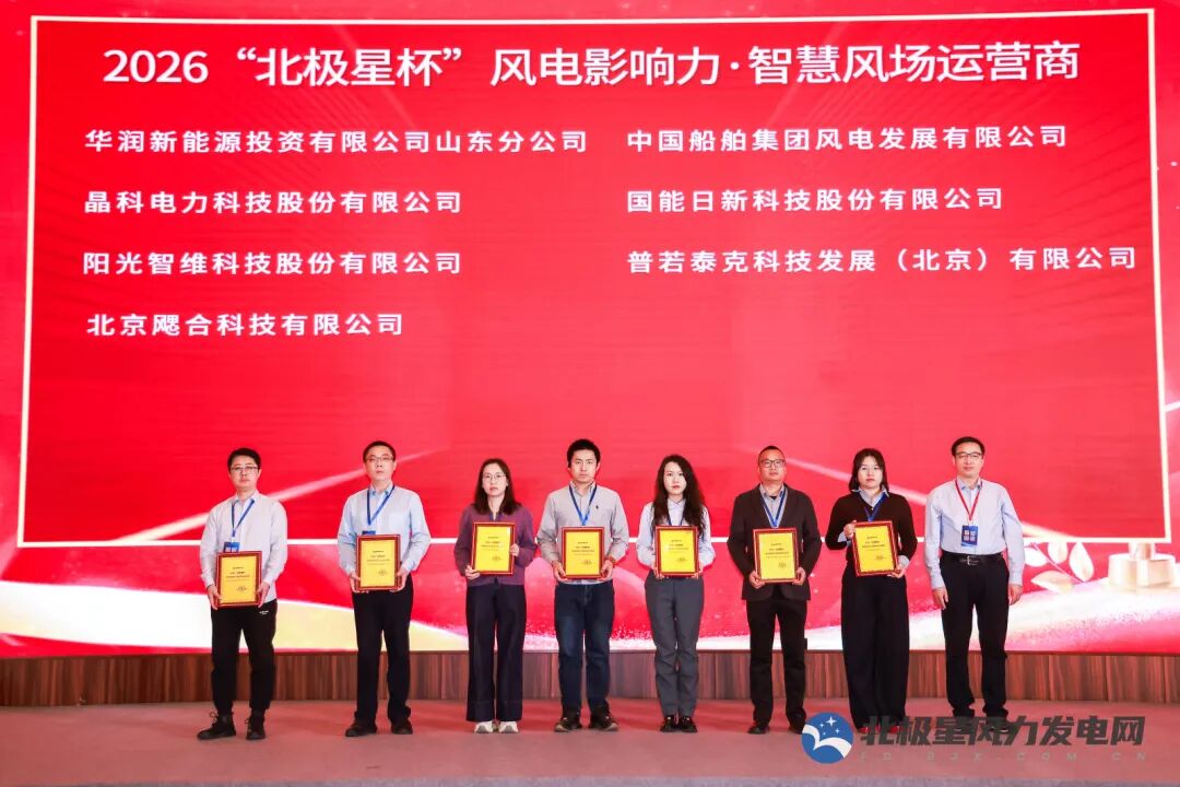 近日,由北极星风力发电网主办的2026“北极星杯”风电影响力企业评选圆满落幕,国能日新科技股份有限公司凭借在智慧风场运营领域的技术创新与实践成果,成功斩获 “风电影响力智慧风场运营商” 奖项,这一荣誉是行业对公司风电数智化解决方案核心价值的权威认可。