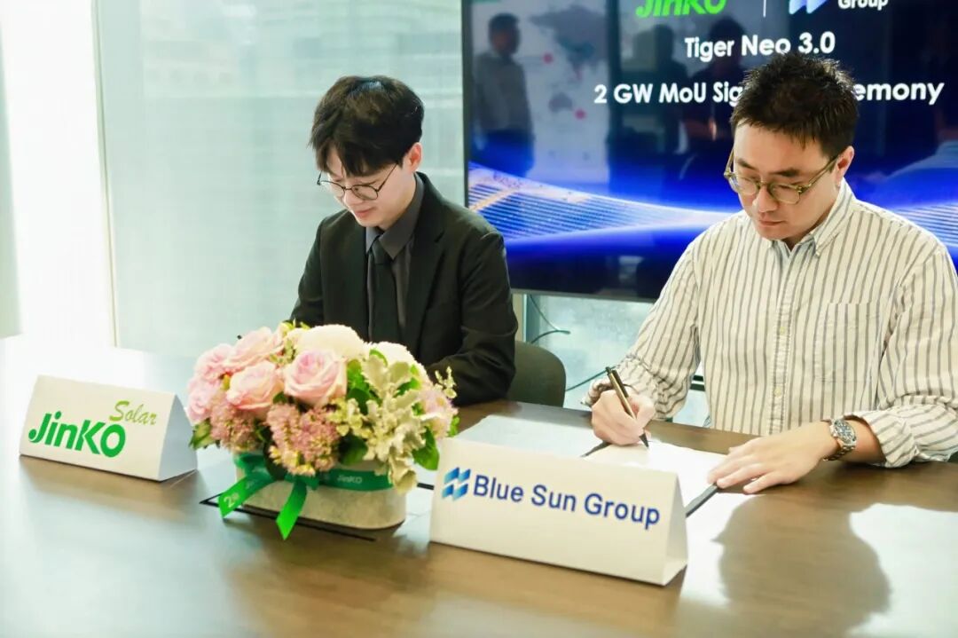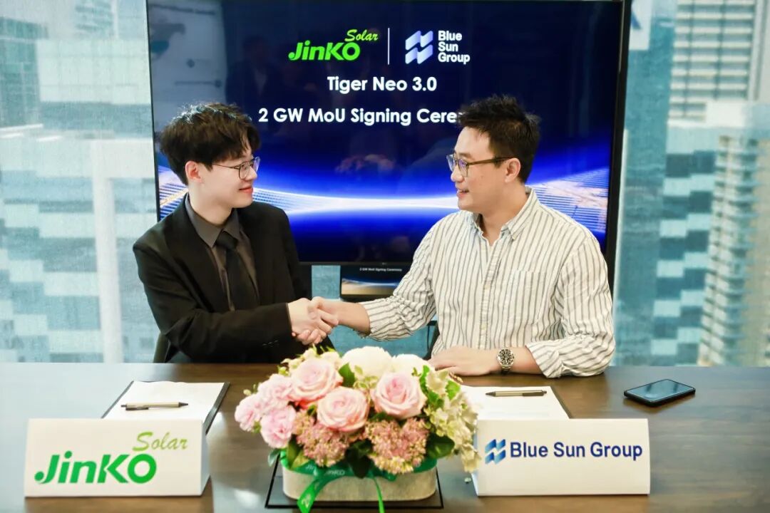 近日,全球领先的光伏企业晶科能源与澳大利亚光伏分销商 Blue Sun Group 正式签署一项关于2GW飞虎3高效组件的战略合作备忘录。签约仪式在晶科能源悉尼新总部举行,标志着双方在过往三年累计交付超1GW组件的坚实合作基础上,进一步深化战略协同,共同拓展澳大利亚分布式光伏市场。