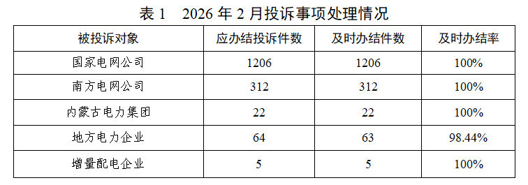 2026年2月能源监管热线投诉处理情况通报|用电服务优化指南