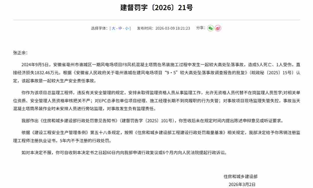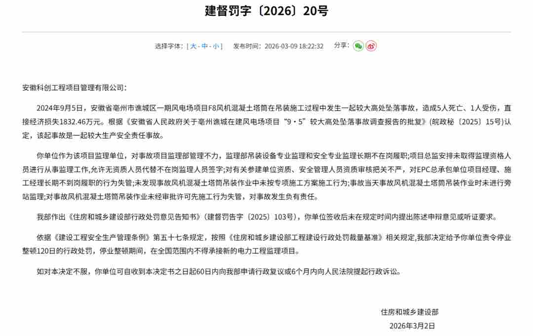 风电高坠事故处罚结果发布|监理责任分析全攻略
