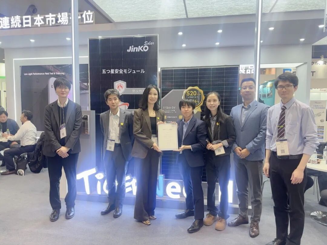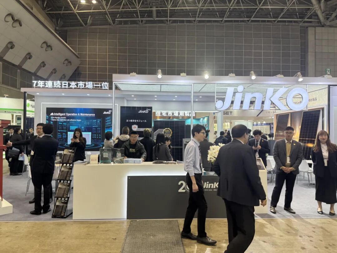 在东京举行的PV EXPO 2026上,全球领先的光储企业JinkoSolar展示了多款面向不同应用场景的创新组件产品,包括低电流组件、漏水槽组件、Tiger Neo 3.0系列组件、防火组件以及轻量防眩组件,吸引了众多行业客户与合作伙伴关注。