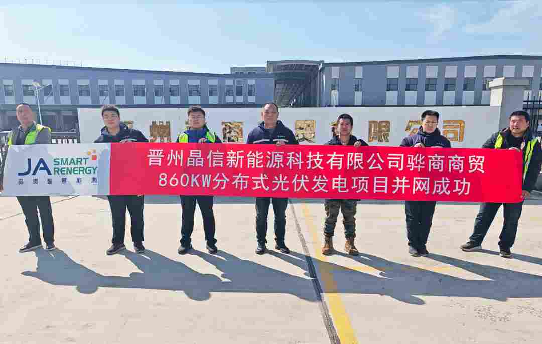 3月19日,由晶澳智慧能源承建的晋州晶信新能源科技有限公司骅商商贸860kW分布式光伏发电项目顺利完成并网。