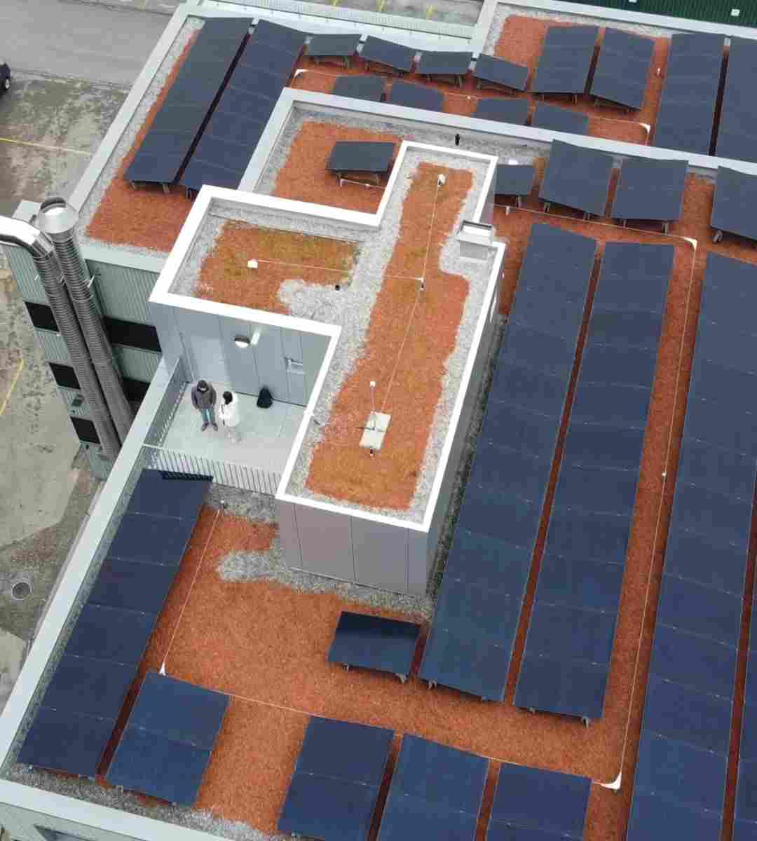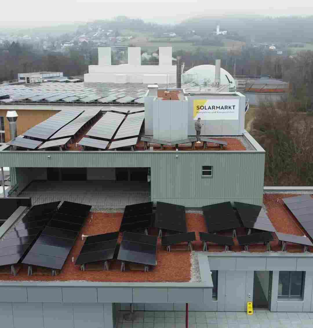 Solarmarkt办公楼屋顶所安装的,正是隆基高效BC组件。该技术产品正面无栅线,全黑外观优雅融入建筑和场景,同时在组件效率、安全性、可靠性与长期发电性能等方面表现卓越,因而持续获得全球用户的青睐。
