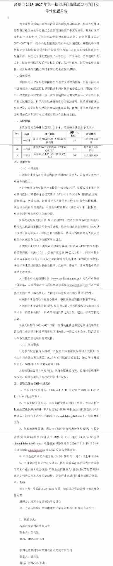 文件指出,本次竞配接受联合体,集团公司的任一投资主体作为联合体成员,均视为其代表该集团公司参与了竞配。联合体须由绝对控股方(50%以上股权)作为牵头人,并提交联合体协议,协议应当明确牵头人代表全部联合体成员负责竞争性配置所有事宜。