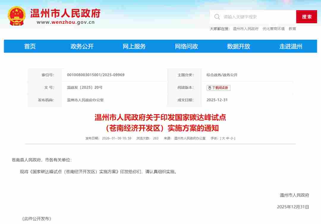 北极星风力发电网获悉,近日,浙江省温州市人民政府发布《关于印发国家碳达峰试点(苍南经济开发区)实施方案的通知》。