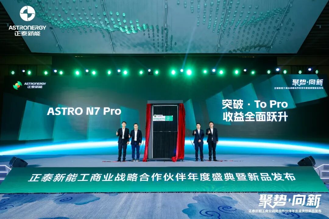 1月7日,“正泰新能工商业战略合作伙伴年度盛典暨新品发布”在杭州隆重举行,来自全国各地的数百位工商业光伏领域核心战略合作伙伴、行业专家齐聚,共同回顾2025年并肩奋斗的历程,分享光伏市场前沿洞察。现场正泰新能重磅发布新一代高效光伏组件产品ASTRO N7 Pro,以670W最高功率、24.8%组件效率,突破传统组件的能效边界。此次活动不仅是正泰新能对合作伙伴的年度致敬,更是面向崭新未来,与伙伴共绘绿色能源新蓝图的战略启航。