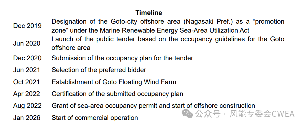 五岛漂浮式海上风电公司(Goto Floating Wind Farm LLC)被选为日本自 2019 年 4 月《可再生海域利用法》(Renewable Sea Area Utilization Law)生效以来的首个海上风电项目拍卖的获胜者,该风电场是首个根据该法获得日本经济产业大臣和国土交通大臣认证的同类项目。