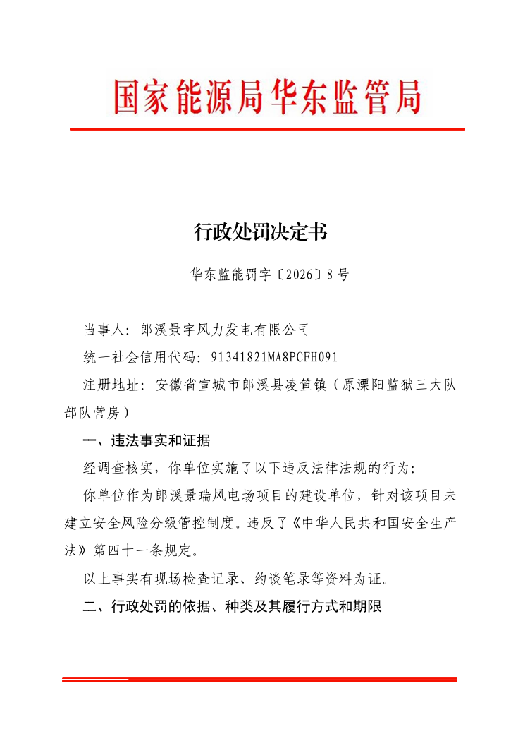 华东监能罚字〔2026〕2号