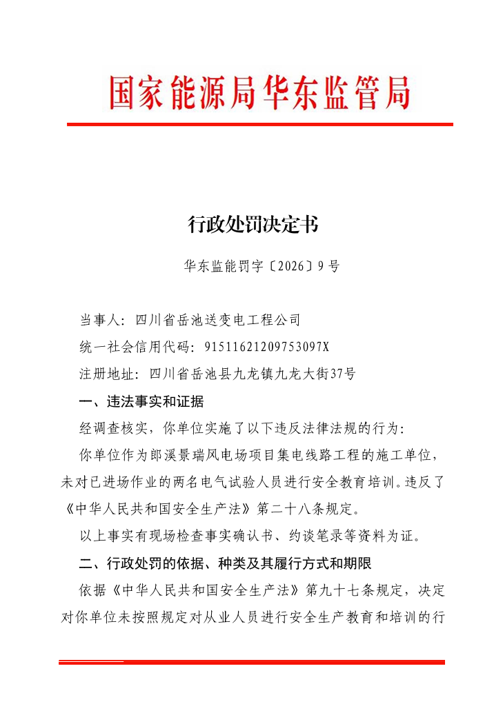 华东监能罚字〔2026〕9号