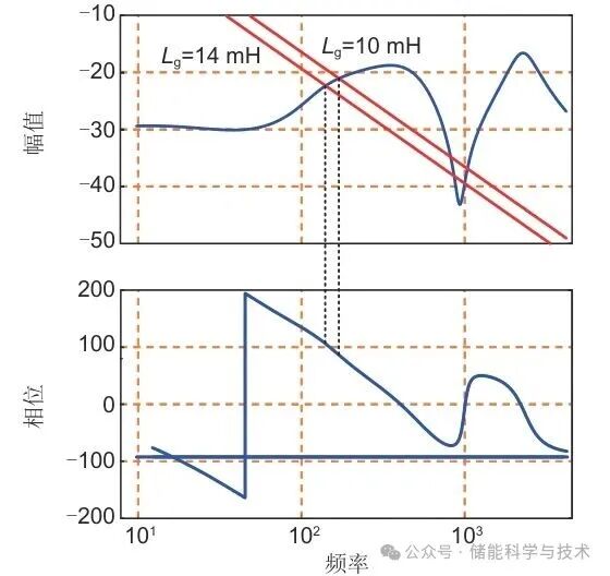 在如图5所示的波特图中,Lg=14 mH时系统相位裕度为-6.16°,对应系统失稳,与仿真中0.4 s后系统发散失稳相对应。在Lg=10 mH时系统相位裕度为18.41°,对应仿真0~0.2 s时间内系统稳定。