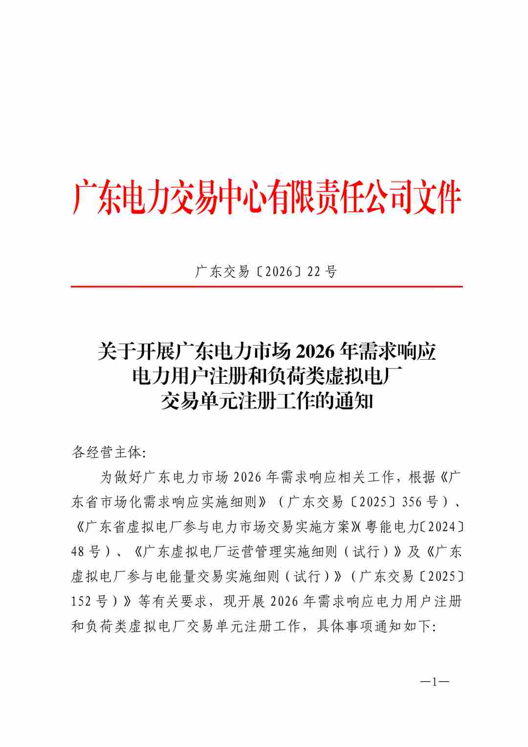 广东电力市场开展2026年需求响应电力用户注册和负荷类虚拟电厂交易单元注册工作
