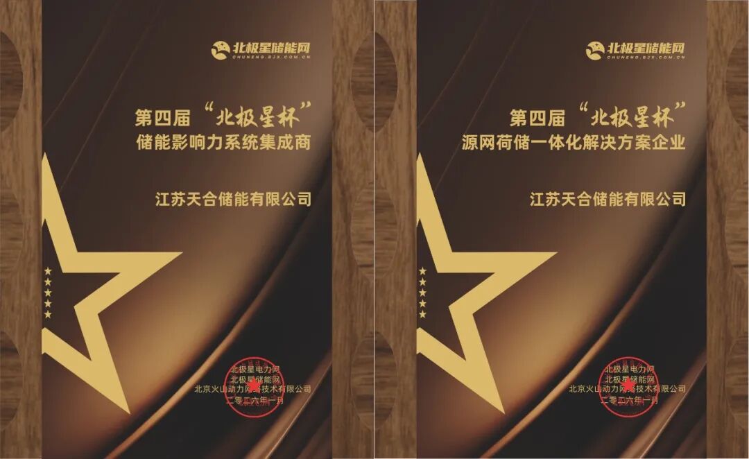 1月28日,2026年中国储能技术创新应用研讨会暨第四届“北极星杯”储能影响力企业评选在河南郑州召开。凭借卓越的技术实力与市场影响力,天合储能在本次评选中荣获“储能影响力系统集成商”和“源网荷储一体化解决方案企业”双项殊荣。这一双重认可,不仅体现了行业对天合储能技术创新与全场景解决方案能力的高度认可,也彰显了公司在推动新型电力系统构建中的关键作用。