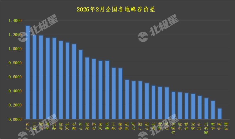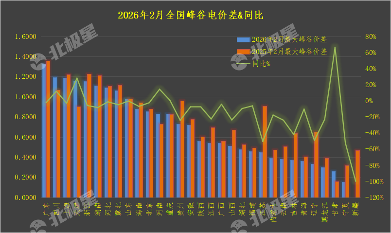 2月宁夏、新疆 “峰低谷高” 电价倒挂!超60%地区价差环比下降!