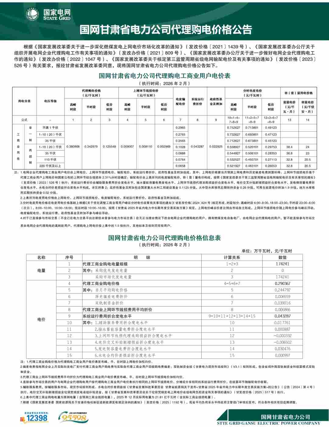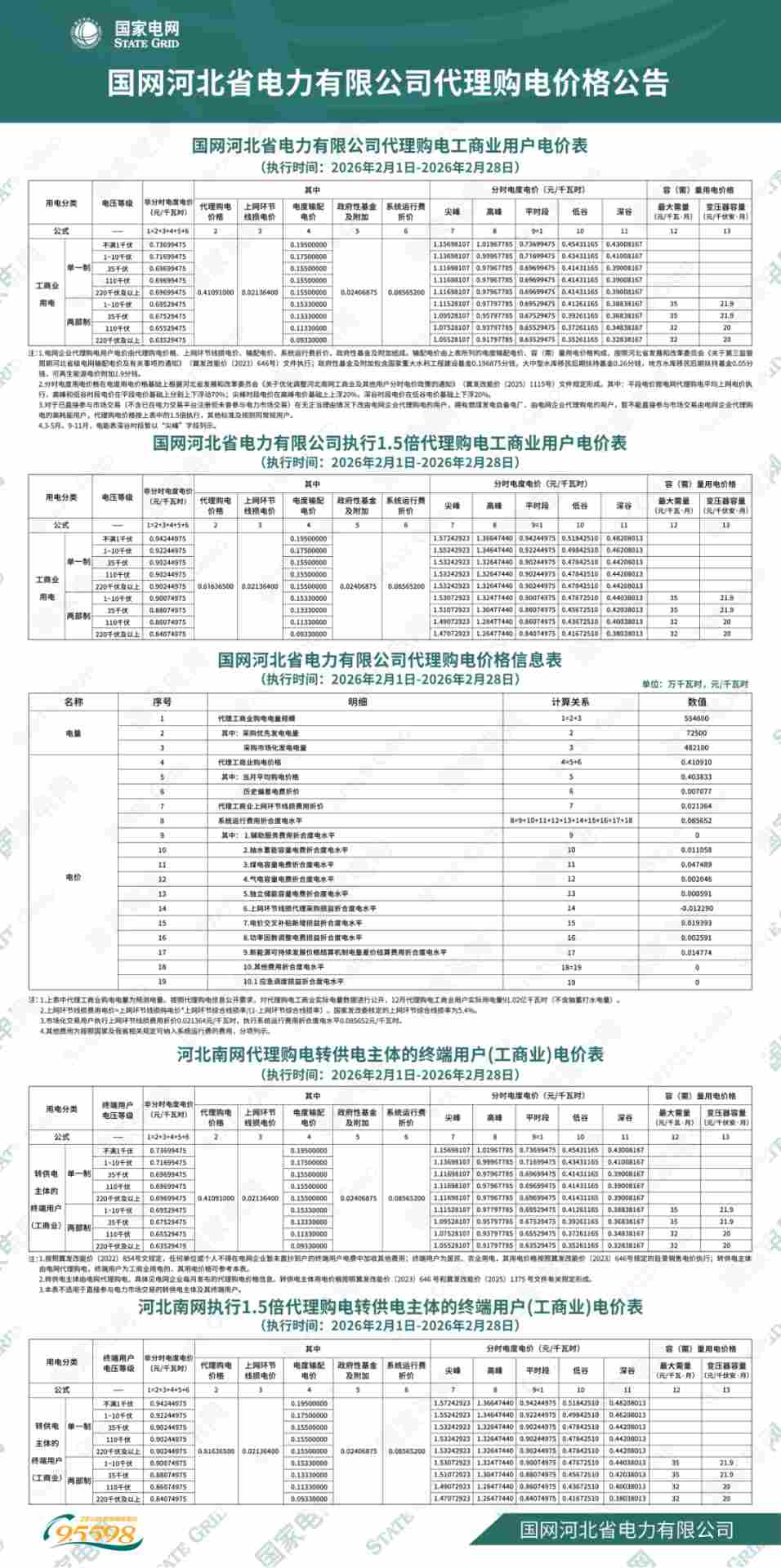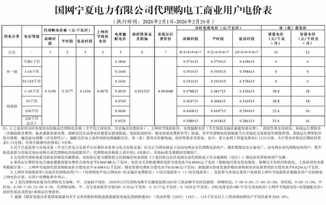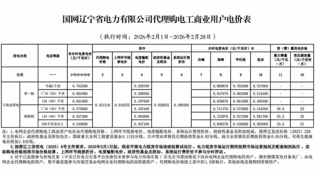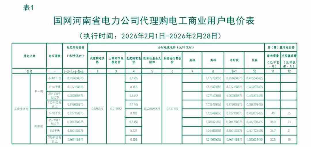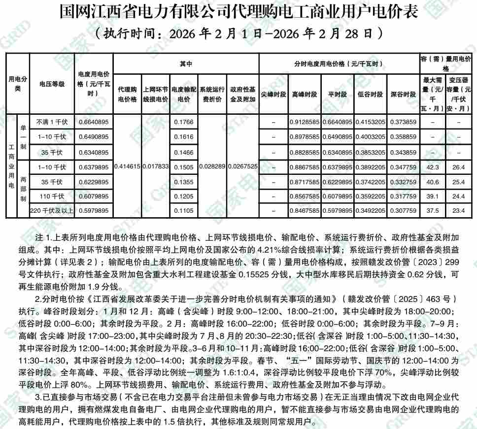 1月22日,贵州发改委印发《关于补充完善峰谷分时电价》的通知,其中明确,自2026年2月1日起,上网电价(交易电价或代理购电价格),上网环节线损费用参与浮动,输配电价(包括输配电量电价和容/需量电价)、系统运行费用、政府性基金及附加不参与浮动。