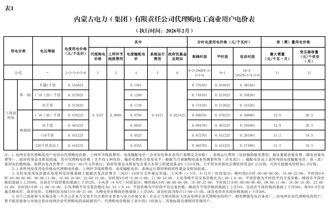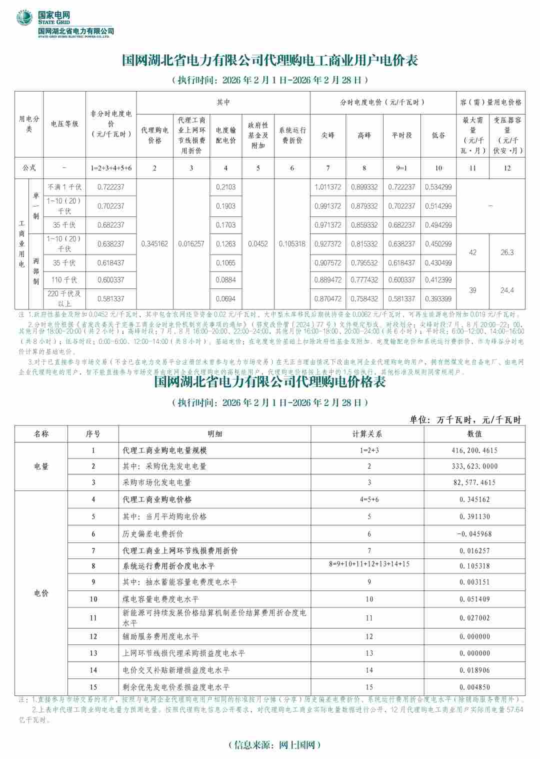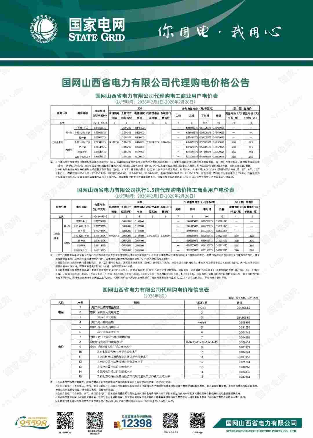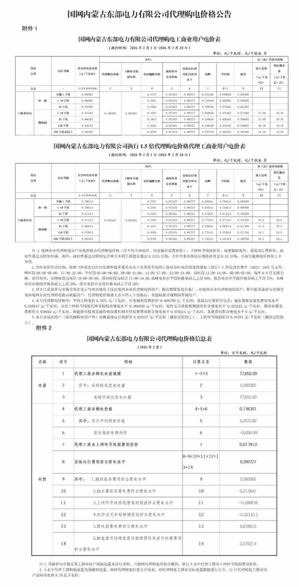1月22日,贵州发改委印发《关于补充完善峰谷分时电价》的通知,其中明确,自2026年2月1日起,上网电价(交易电价或代理购电价格),上网环节线损费用参与浮动,输配电价(包括输配电量电价和容/需量电价)、系统运行费用、政府性基金及附加不参与浮动。