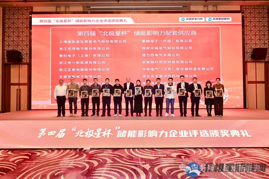 2026年1月28日,备受瞩目的第四届“北极星杯”储能影响力企业评选颁奖典礼在河南郑州隆重举行。金友集团荣获了“储能影响力配套供应商”殊荣。