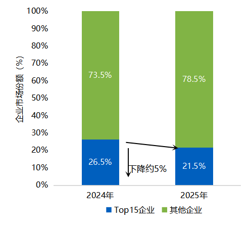 非集采/框采市场虽由能建等央国企主导,但Top15份额仅占21.5%,并未形成寡头垄断,长尾空间依然广阔。