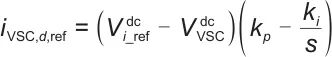 为了控制直流母线电压的稳定,对所有的柔直IVSC采用对等控制模式,即所有的IVSC均采用VdcQ控制,共同维持母线电压的稳定,以增强系统的运行可靠性。根据外环控制目标引入直流侧电压的PI调节,由于逆变器的功率流动默认的是由直流侧向交流侧输送,而柔直IVSC相反,因此,在列写IVSC数学模型时,电压差和逆变器相反,得到的外环控制器为: