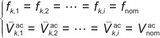 分别为交流微网中交流频率上限和下限,本工作选取的偏差为1%。为了方便,将其均定义为: