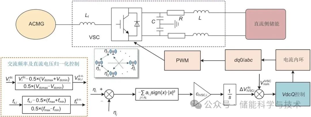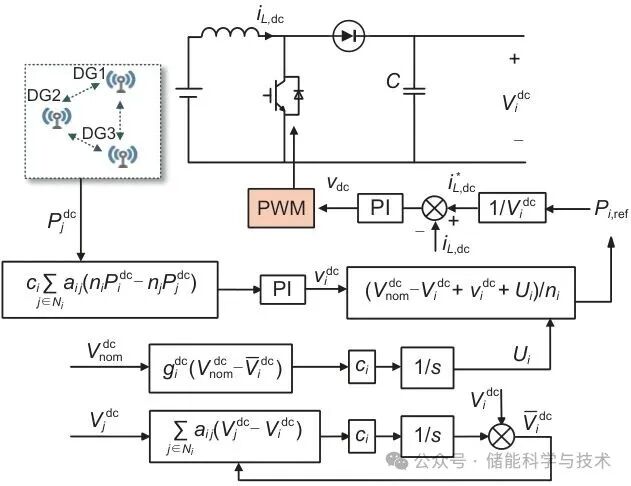 为电压调节项。图4是直流侧储能系统分布式协调控制框图。