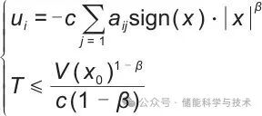 (2)有限时间一致性算法。为了使得交流频率和直流电压输出的归一化值快速趋于一致,本工作引入了有限时间一致算法,通过算法可以使得系统在有限时间内与相邻智能体的状态保持一致;有限时间协议与渐近协议相比加快了收敛速度,同时加入了一定的扰动抑制水平。公式和收敛时间定义如下: