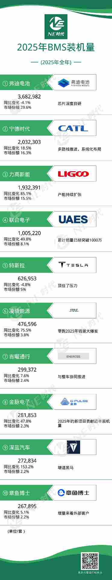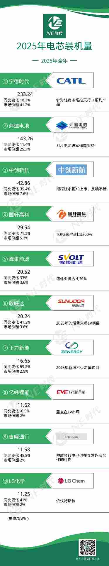 2025年全年乘用车电芯/PACK/BMS装机量:宁德时代,绝对的王者
