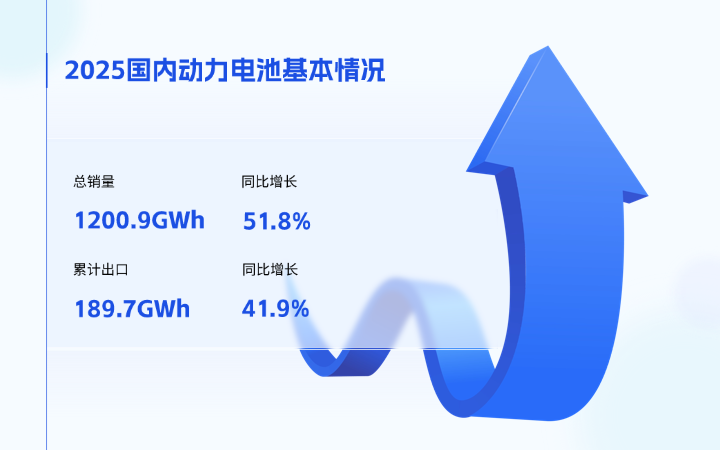 据中国汽车动力电池产业创新联盟数据,2025年我国动力电池销量为1200.9GWh,同比增长51.8%,较2024年28.4%的增速大幅提升;累计装车量769.7GWh,同比增长40.4%,较2024年增加221.3GWh,产业增长背后的结构性变化具体体现在以下方面:
