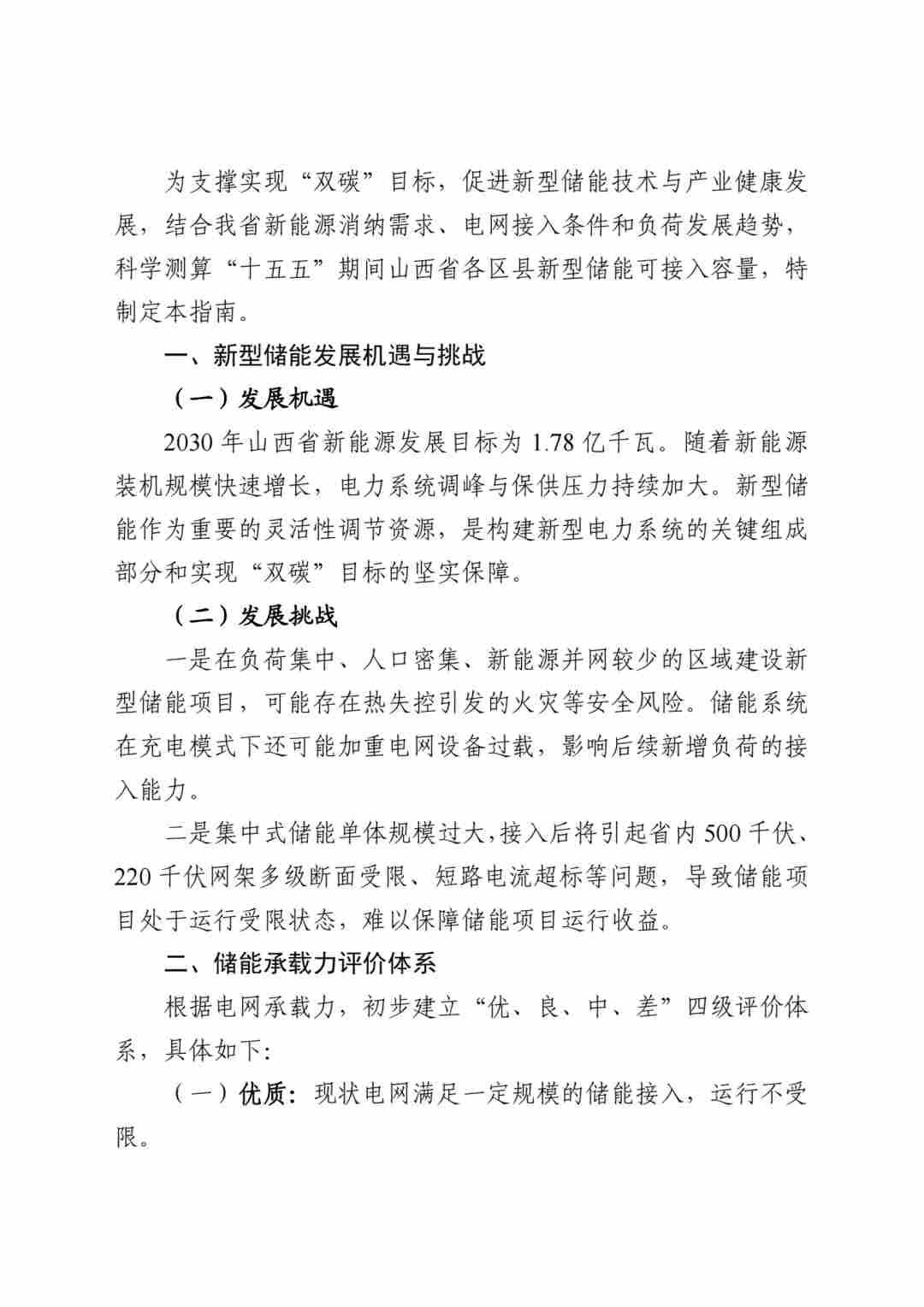 按储能承载力分区!山西省新型储能发展指南(2026年)印发!