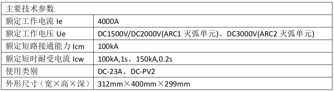 全面的使用类别与强大的通断能力:产品同时满足DC-23A(高时间常数负载)和DC-PV2(具有临界负载电流分断要求的负载)等严苛的使用类别要求。额定短时耐受电流(Icw)高达100kA/1s和150kA/0.2s,额定短路接通能力(Icm)达100kA,具备承受并分断系统极端故障电流的能力,即兼做部分电流熔断器功能后,快速更换灭弧单元的功能。