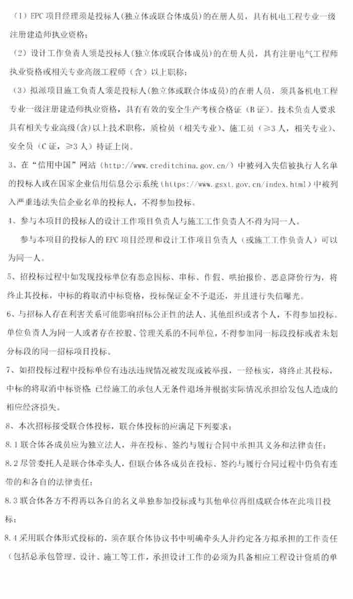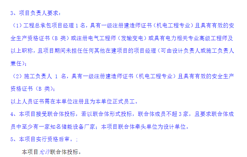 项目要求投标人五年内至少一项目风电/光伏施工总承包工程或配套储能或其它含储能项目(综合能源、多能互补、电网侧储能等)的施工总承包业绩。
