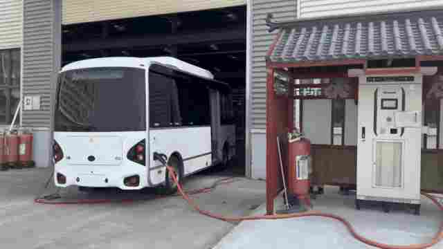 储能巴士正在连接充电桩进行充电
