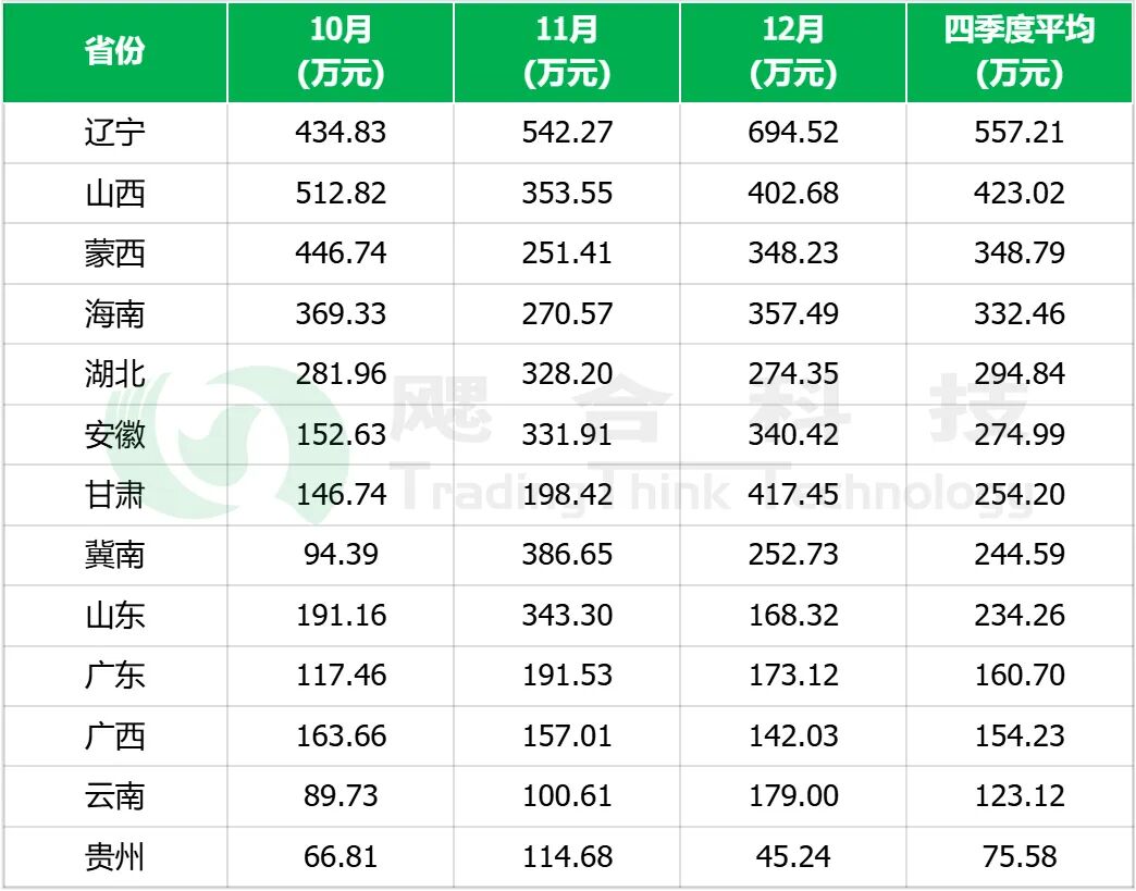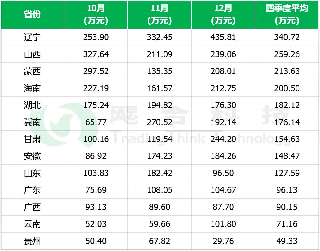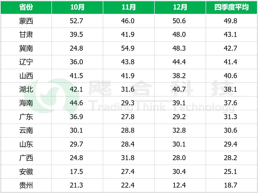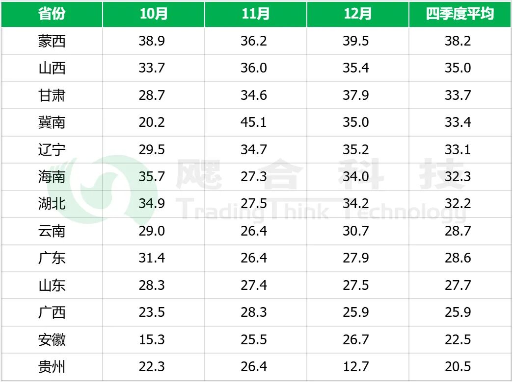 从收益倍率上看,云南提升倍率最高,四季度平均提升倍率能够达到1.85。