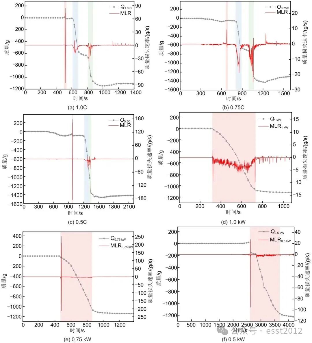 质量损失是衡量电池热失控过程中内部物质分解、挥发和喷射的重要指标,对于评估热失控的严重程度及产气行为具有重要意义。另一个关键参数是平均质量损失率(Mavg-TR),指热失控过程中质量变化的平均速率,由下式定义: