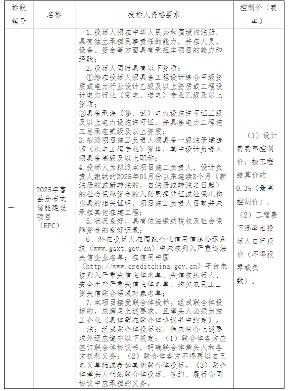 6、招标范围:2025年曹县分布式储能建设项目(EPC)的工程设计、施工等。(具体详见招标文件);
