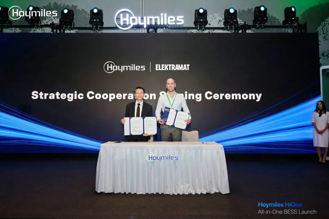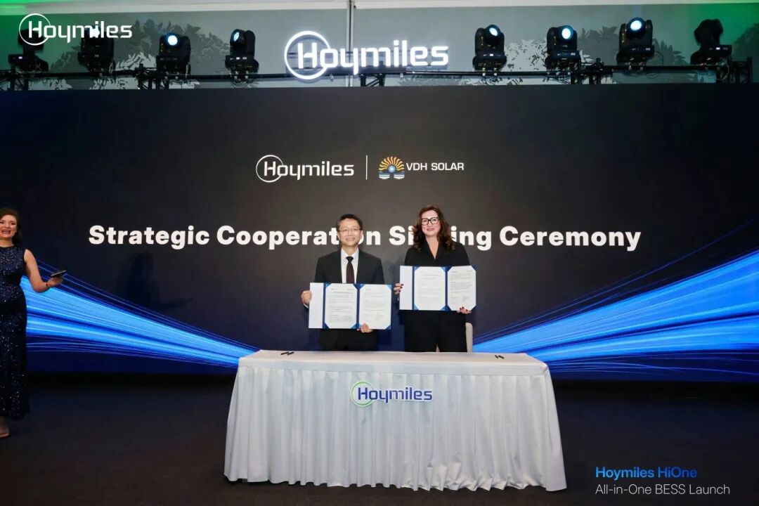 发布会现场举行了隆重的战略合作签约仪式。禾迈与荷兰的VDH SOLAR与Elektramat、德国的Tepto与PVSelected、奥地利的Sunlumo以及瑞士的Megasol 等多家欧洲合作伙伴正式签约,标志着HiOne系列正式规模化进入欧洲市场。
