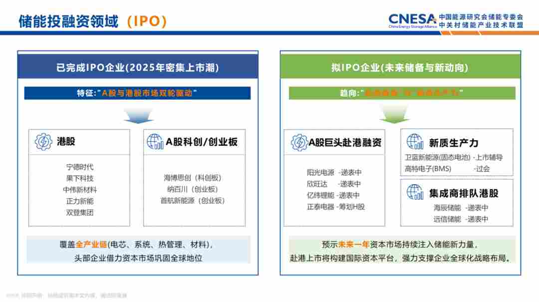 资本市场在2025年呈现出明显的“资本重估”特征。在一级市场,资本涌向固态电池、非锂长时储能等领域;在二级市场,则掀起了一股“赴港上市潮”。海博思创、双登股份、宁德时代(H股)等龙头相继登陆或筹划港股,其背后是对“安全、长时、海外合规与全球交付能力”的重新定价。