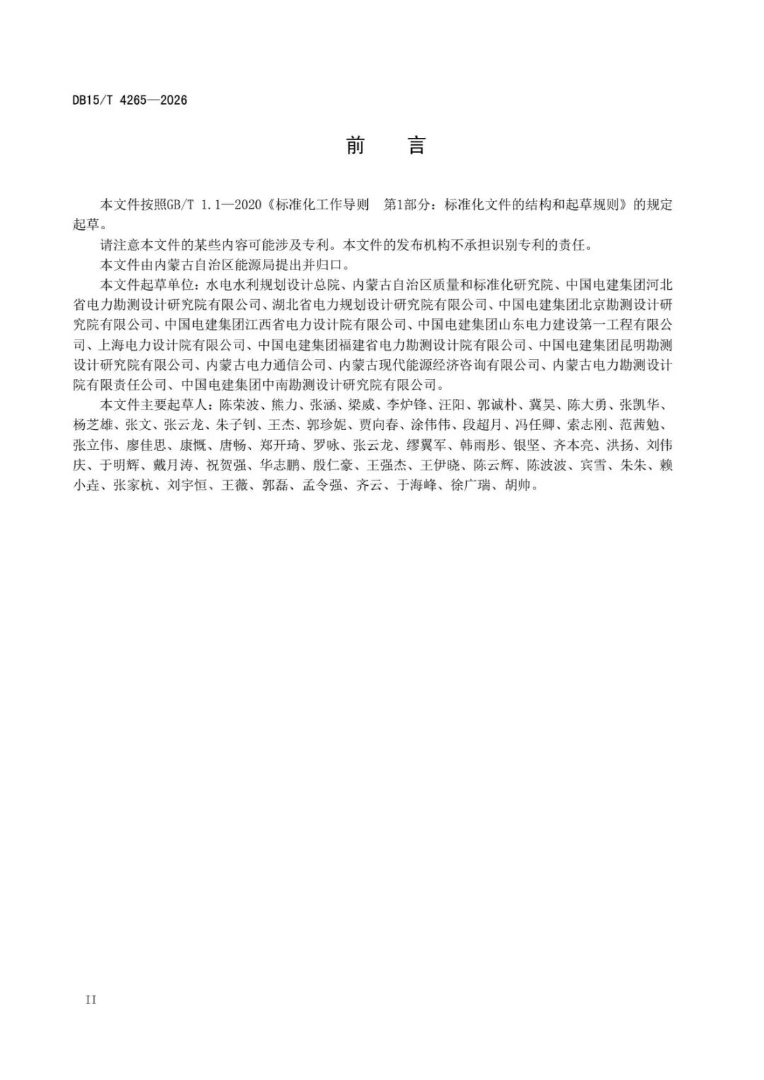据悉,该标准的起草单位包括水电水利规划设计总院、内蒙古自治区质量和标准化研究院、中国电建集团河北省电力勘测设计研究院有限公司、湖北省电力规划设计研究院有限公司、中国电建集团北京勘测设计研究院有限公司、中国电建集团江西省电力设计院有限公司、中国电建集团山东电力建设第一工程有限公司、上海电力设计院有限公司、中国电建集团福建省电力勘测设计院有限公司、中国电建集团昆明勘测设计研究院有限公司、内蒙古电力通信公司、内蒙古现代能源经济咨询有限公司、内蒙古电力勘测设计院有限责任公司、中国电建集团中南勘测设计研究院有限公司。