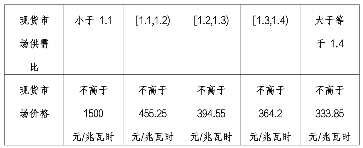 另外文件还提出,根据市场供需比,启动市场力缓解机制市场力行为监测。日前市场出清后,逐时段计算市场供需比(市场供需比={市场发电能力+固定出力(含储能)-外送电力+受入电力}/实际负荷)和价格情况,初步判断市场内是否存在操纵市场力的行为,并启动市场力行为监测,具体标准如下: