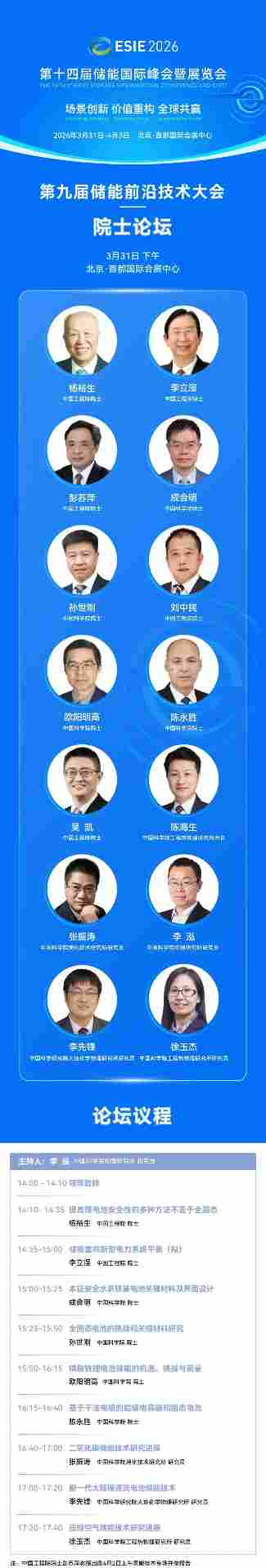 9位院士领衔储能大会日程发布|前沿技术全攻略