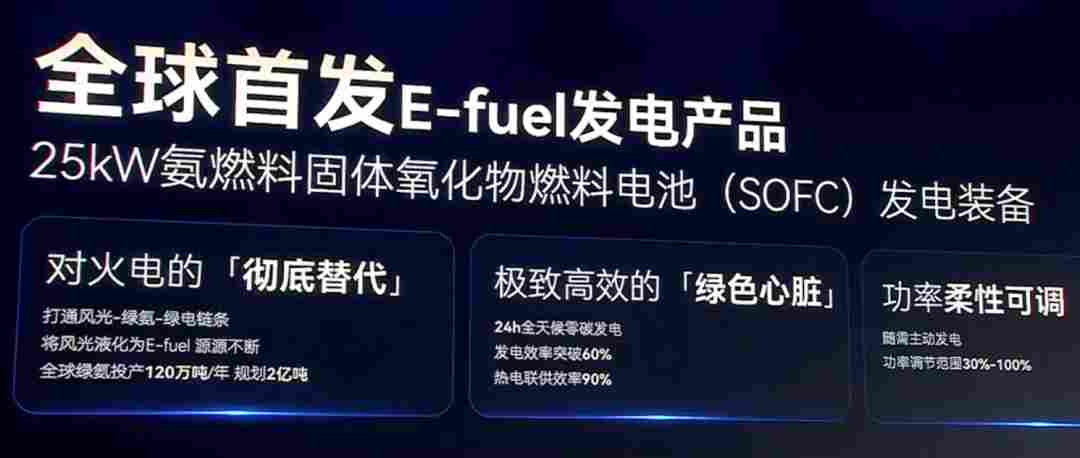 与此同时,奇瑞首发SOFC燃料电池发电装备,成为支撑零碳园区落地的核心利器。该设备以风光发电制取的绿氢、绿氨为燃料,采用固体氧化物燃料电池技术,可实现60%发电效率、90%热电联产效率,还能柔性调节负荷、模块化快速部署,适用于工商业园区、绿色算力中心、船舶动力等多元场景,更可规模化替代传统火电,从源头保障新能源车用上纯绿电。