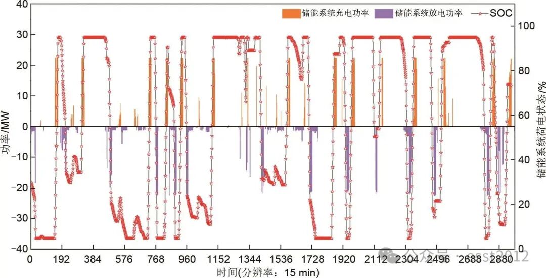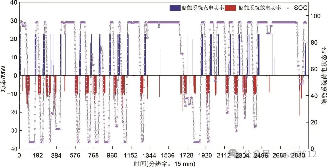 本文亮点:1、提出基于动态阈值的储能充放电决策机制。该机制根据系统功率冗余/不足状态及分时电价,动态设定差异化的充放电阈值,实现了从“指令驱动”到“市场信号驱动”的转变,有效平衡了调峰需求、设备寿命与经济效益。2、通过设计储能系统在弃风与缺电场景下的双向协同控制策略,一方面提升弃风时段储能消纳效率,另一方面减少高价购网电量,通过峰谷套利实现储能典型月收益占上网收益10%以上,同时延缓储能寿命损耗。