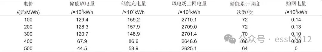 表2 不同市场交易电价阈值下枯风季典型月风电场与储能运行情况表